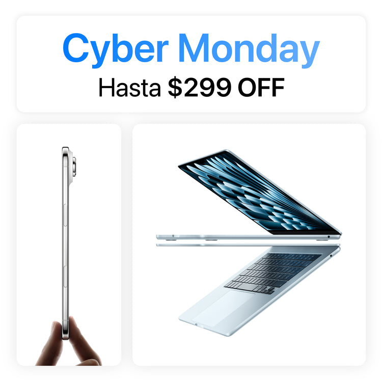- $150 (ciento cincuenta dólares) de descuento en la compra de MacBook Air M2. Aplica en modelos de 13 pulgadas con chip M2.