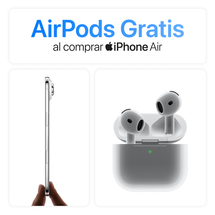 - AirPods 4 gratis en la compra de iPhone Air. Aplica para todos los modelos de iPhone Air y AirPods 4.