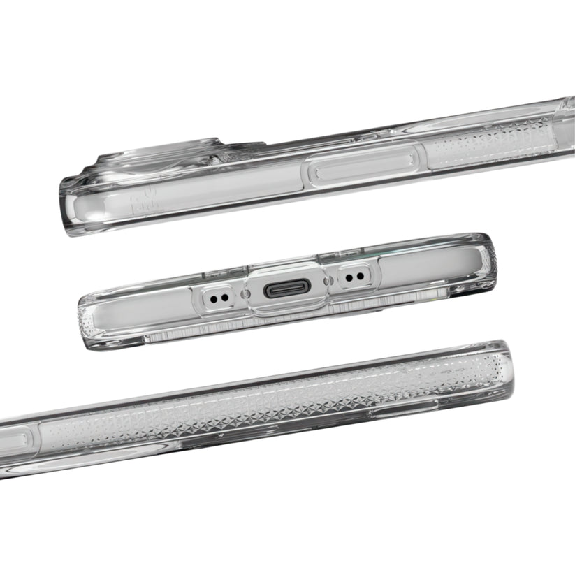 Además, ofrece protección contra caídas de hasta 13 pies, compatibilidad con MagSafe y tecnología anti-amarillenta para que se mantenga transparente por mucho más tiempo.