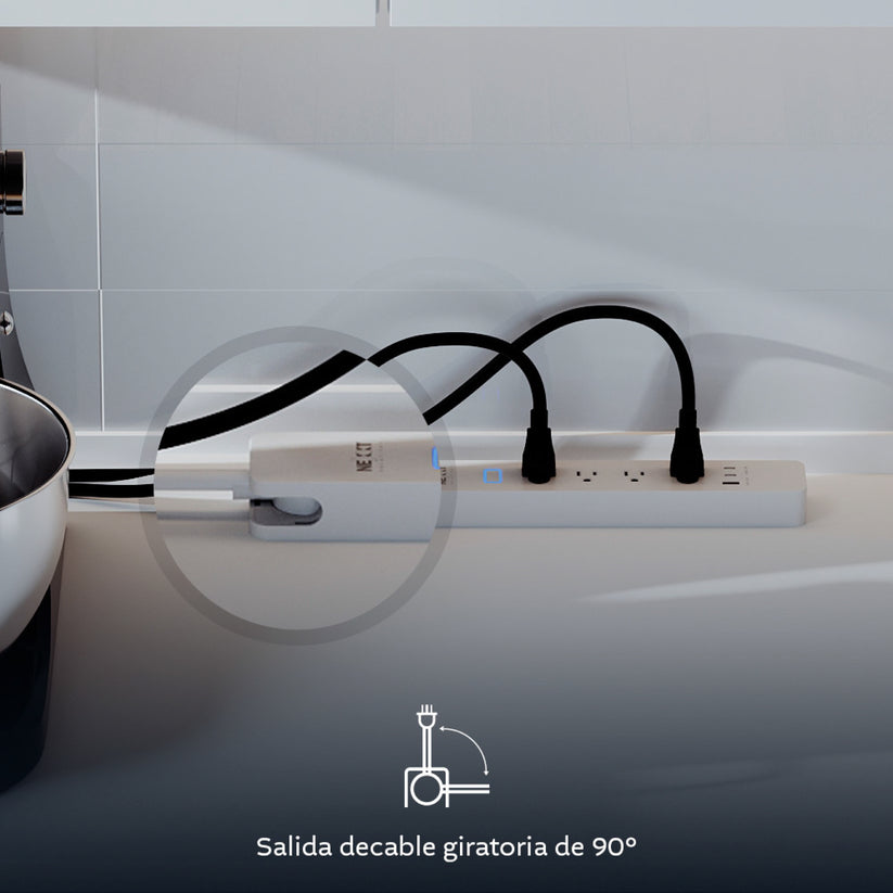 Energía para todo: incluye 4 tomacorrientes inteligentes y 3 puertos USB (2 USB-C® y 1 USB-A) para cargar varios dispositivos a la vez.